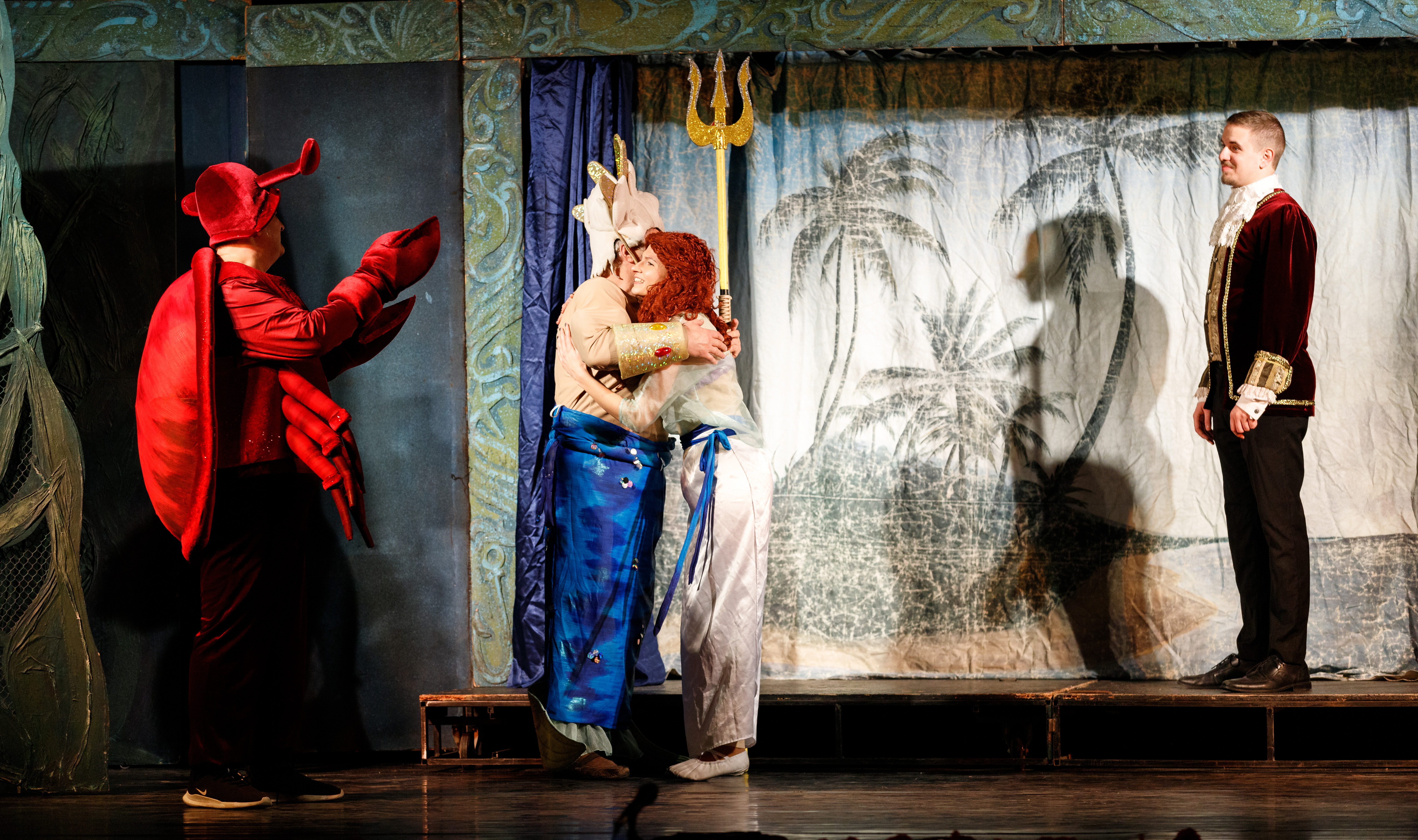 Andersen gyönyörû történetét biztosan sokan ismerik már filmekbõl, de a víz alatti világot, valamint Ariel és a herceg történetét talán most láthatjátok elõször zenés színpadon. Ariel, a kis hableány apja, Triton király víz alatti birodalmában él, de minden gondolatával az emberek közé vágyódik. Kis barátjával és egyben cinkostársával, Ficánkával megpróbálnak minél többször felúszni a vízfelszínre, hátha látnak valami érdekeset az emberek világából. Egy alkalommal nagy vihar támad és egy emberekkel teli hajó a vihar markába kerül. Ariel kimenti a hajón utazó Erik herceget és attól fogva menthetetlenül beleszeret, csak a hercegre tud gondolni minden pillanatában.