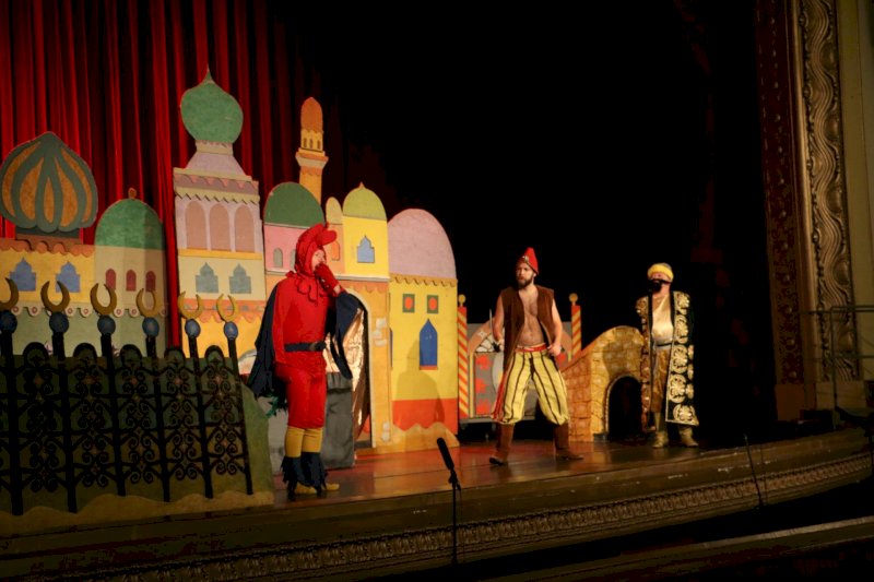 A tanulságos népmeséből színre vitt, országos sikerű produkciót a budapesti Görbe Tükör Színház varázsolja színpadra hatásos interaktivitással, sok-sok zenével, humorral, ötletes és látványos formában - többek között az isztambuli misztikus császári palota megelevenítésével.